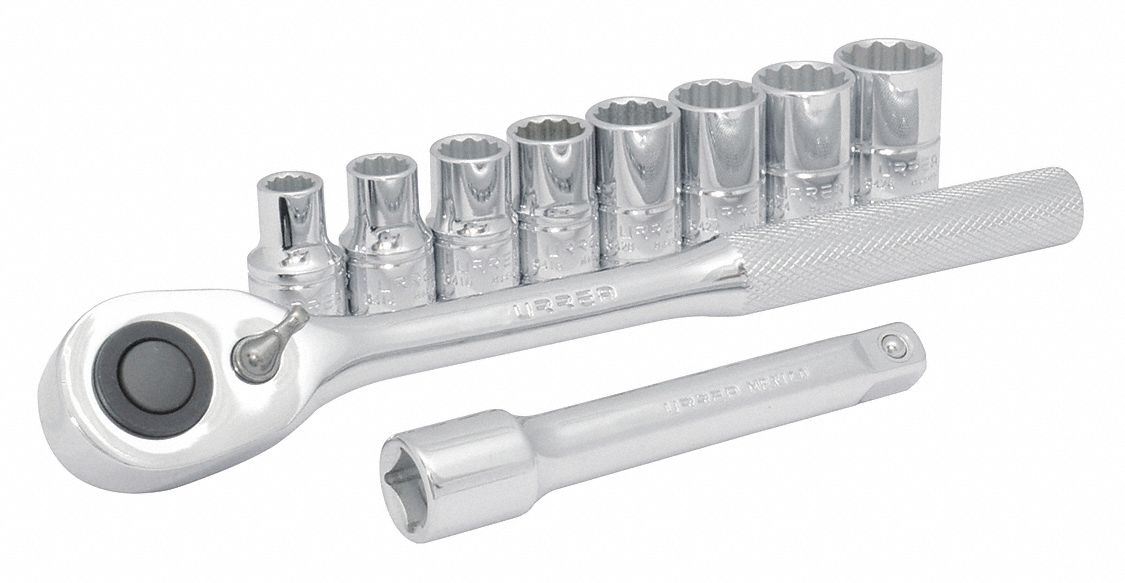 Incluye matraca reversible para trabajar en ambos sentidos con un cuadro de 3/8 de pulgada, 8 dados estándar de 1/4, 9/32, 5/16, 11/32, 3/8, 7/16, 1/2 y 1/8 de pulgada, 8 dados milimétricos de. Urrea 10001_10522, 10502_10522 $ … Dewalt juego de 21 brocas helicoidales con revestimiento de óxido negro. Surebilt juego de llaves de dados y matraca, 73 piezas.
